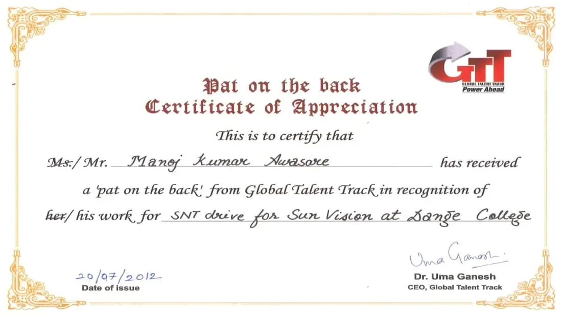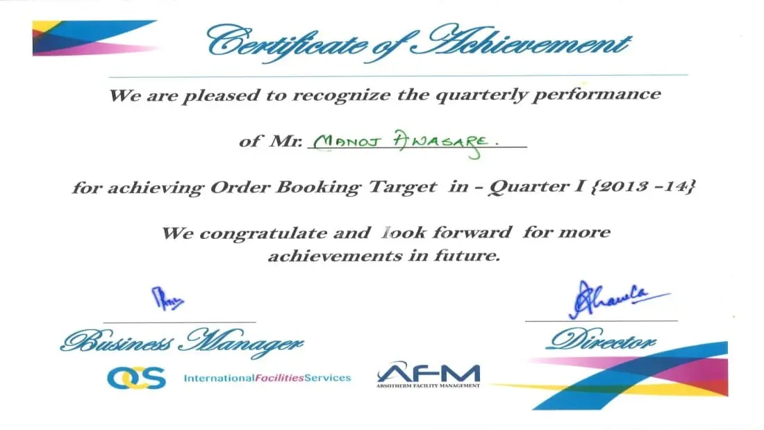 In appreciation with my achievements, performance, and efforts that is worth awarding.